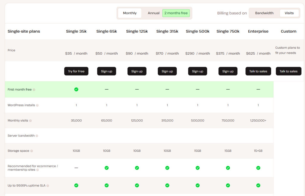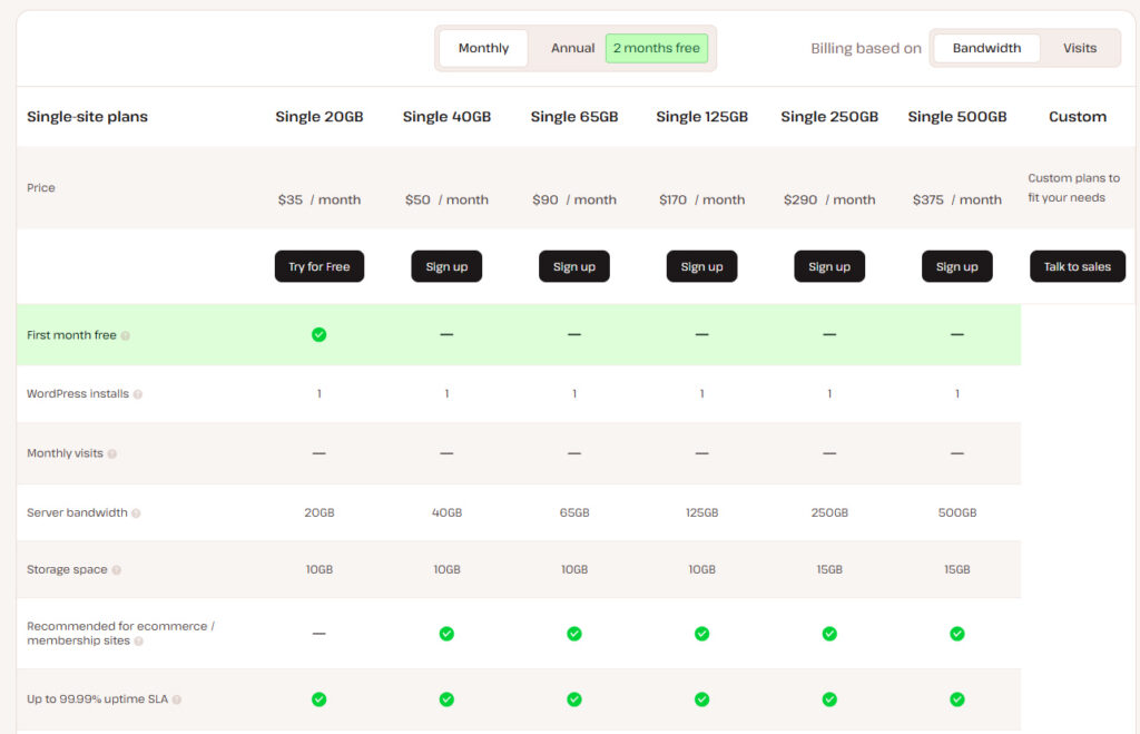 Ein sehr großer Vorteil: Nicht alle Hoster bieten dir diese flexible Auswahl zwischen Bandwidth und Visits an. Bei Kinsta kannst du genau das Modell wählen, das zu deinem Projekt passt. Welches Modell du genau auswählen sollst, liegt an dir – je nachdem, für was du es genau brauchst.